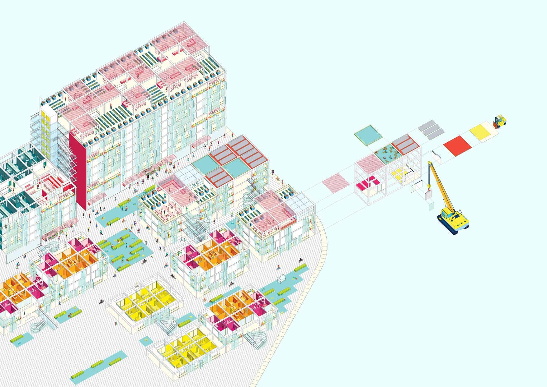 Collaboratively, my partner and I came up with the master plan of the project, but I primarily worked on the concept and layout of the micro-blocks as well as the isometric drawing, while my partner worked on the concept and layout of the mega-blocks and the renders.