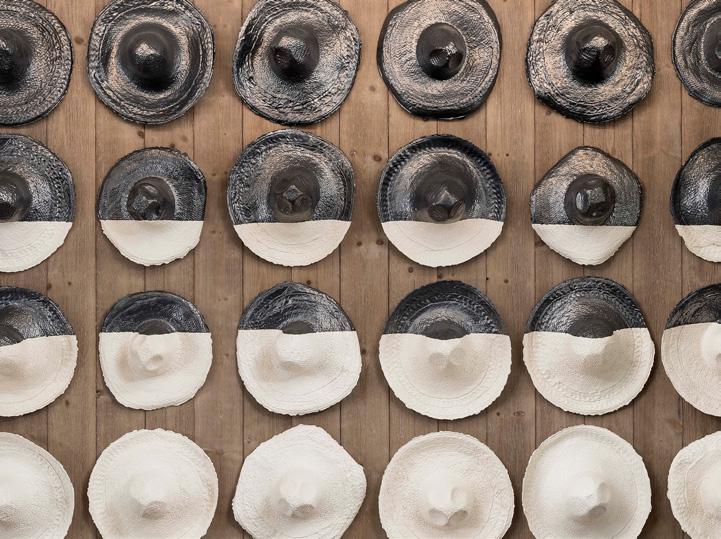 In contrast, Mark rebennack’s “Exhale” drawings capture the essence of breath in undulating waves. These meditative works not only record the artist’s process but invite viewers into a state of restful presence—creating moments of pause throughout the property.