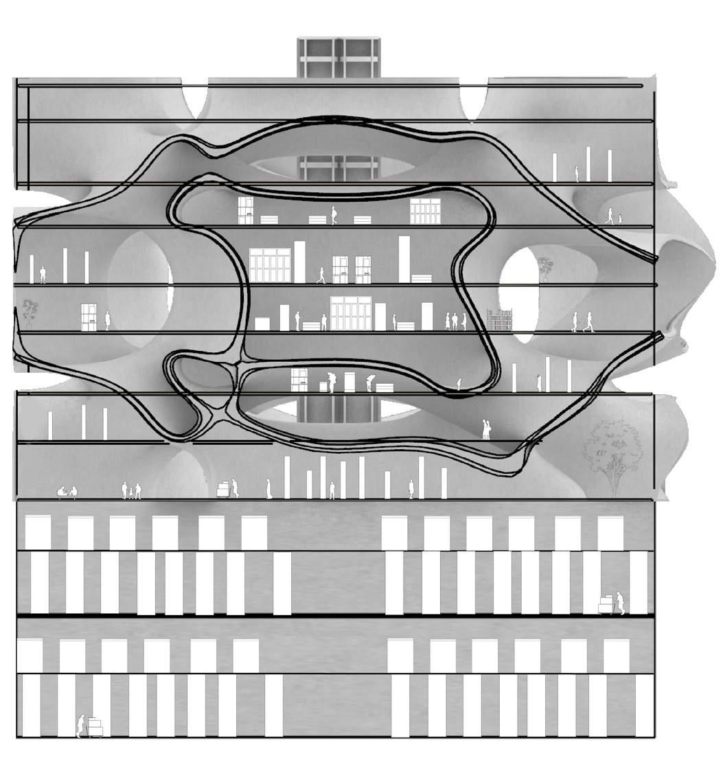 The traditional museum is reimagined as something abstract, pushing the boundaries of form to bend, morph, and undulate in response to its unique internal sensory conditions. This gyroid-like structure produces many different connecting points between spaces both indoors and outdoors, effortless circulation through its curvilinear gestures, and various lighting and shadow conditions throughout the different times of day.