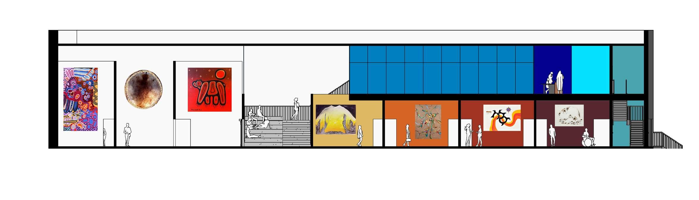 The Portage College pool in Lac La Biche, Alberta, is being repurposed into a museum which will be the new home for Canada’s notable Indigenous Group of Seven (PNIAI). The museum becomes a fully immersive experience with temporary and permanent galleries, taking each visitor on a journey across Canada.
