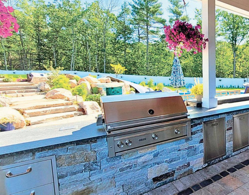 camp on Lake Sunapee, reconstructed the (front) transom to match the rear. It took two days just reconstructing and installing the transom on the barn, to get it all dialed in and looking correct.” Also fun was the installation of not one but two chandeliers to accent different places.