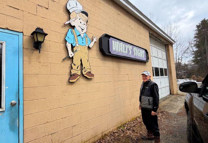 After60yearsofhand-lettering signs,WalterHautanen,ofJaffrey, canspothisownworkamileaway.
