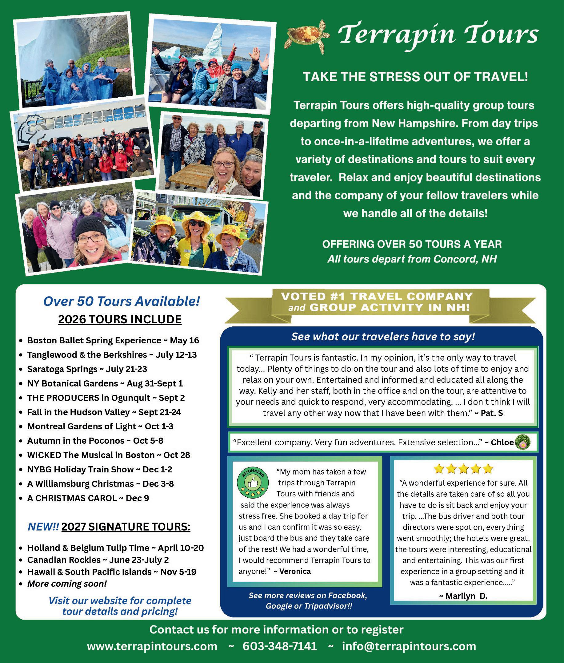 Pace:Whenchoosingatrip, comfortmatters.Sodoespacing. Awell-plannedoutingshould feelenjoyable,notrushed.It shouldleaveenoughtimetotake inthescenery,enjoythecompany,andappreciatethemoment.Thatkindofthoughtful travelcanbeespeciallyrewardingaswegetolder.
