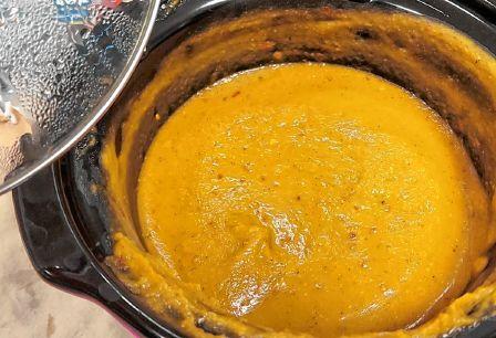 Directions:Boilsquashandonioninalarge potwithwateruntilsoftandthenmash.Onlow heat,addtherestoftheliquidingredientsand spices.Addalittlemoreofthisorthatdependingontaste.Whentheflavorishowyou wantit,blenduntilsmoothusinganimmersion blenderorregularblender.Iftoothick,adda littlemorewater.Servehotorcold.
