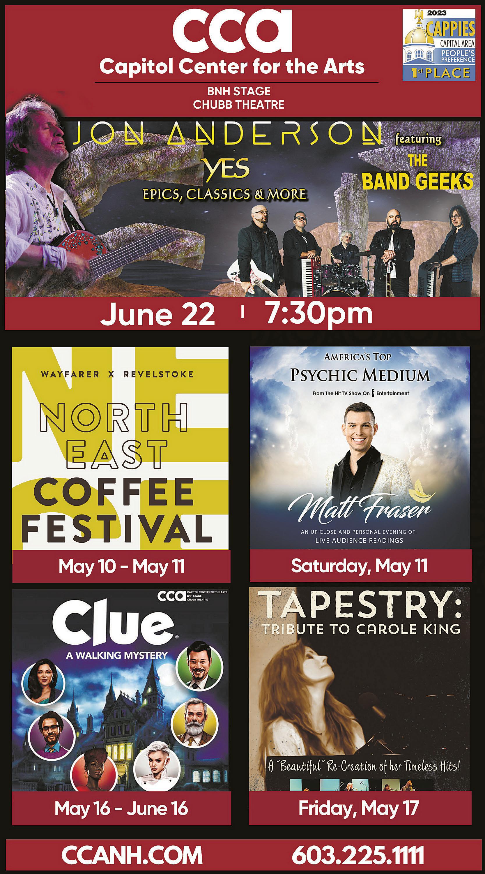 Foradditionalinformation,tickets,andlatteart throwdownsign-ups,goto northeastcoffeefestival.com.Ticketscanalso bepurchasedattheBankof NHStageboxoffice.
