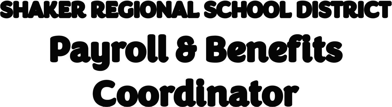 Shaker Regional School District is seeking a Payroll & Benefits Coordinator. This position routinely handles highly sensitive and/or confidential information and will have extensive contact with internal staff members and outside agencies. Prior experience in a school district central office is preferred. Please visit the Human Resources tab on the District website, www.sau80.org, for the complete job posting and to apply.