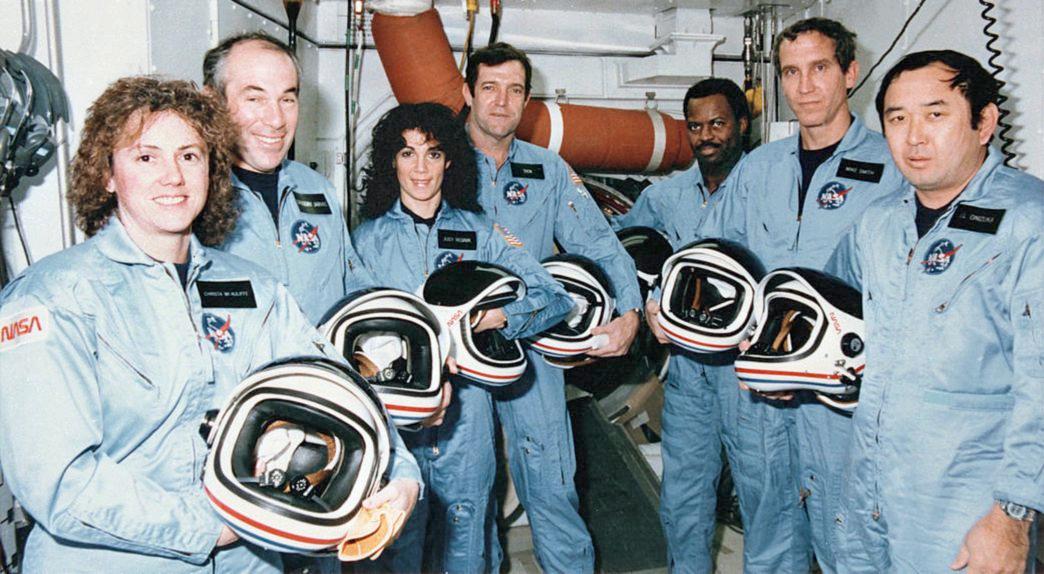 Challenger crew, from left, Christa McAuliffe, Gregory Jarvis, Judy Resnik, Dick Scobee, Ronald McNair, Michael Smith and Ellison Onizuka.