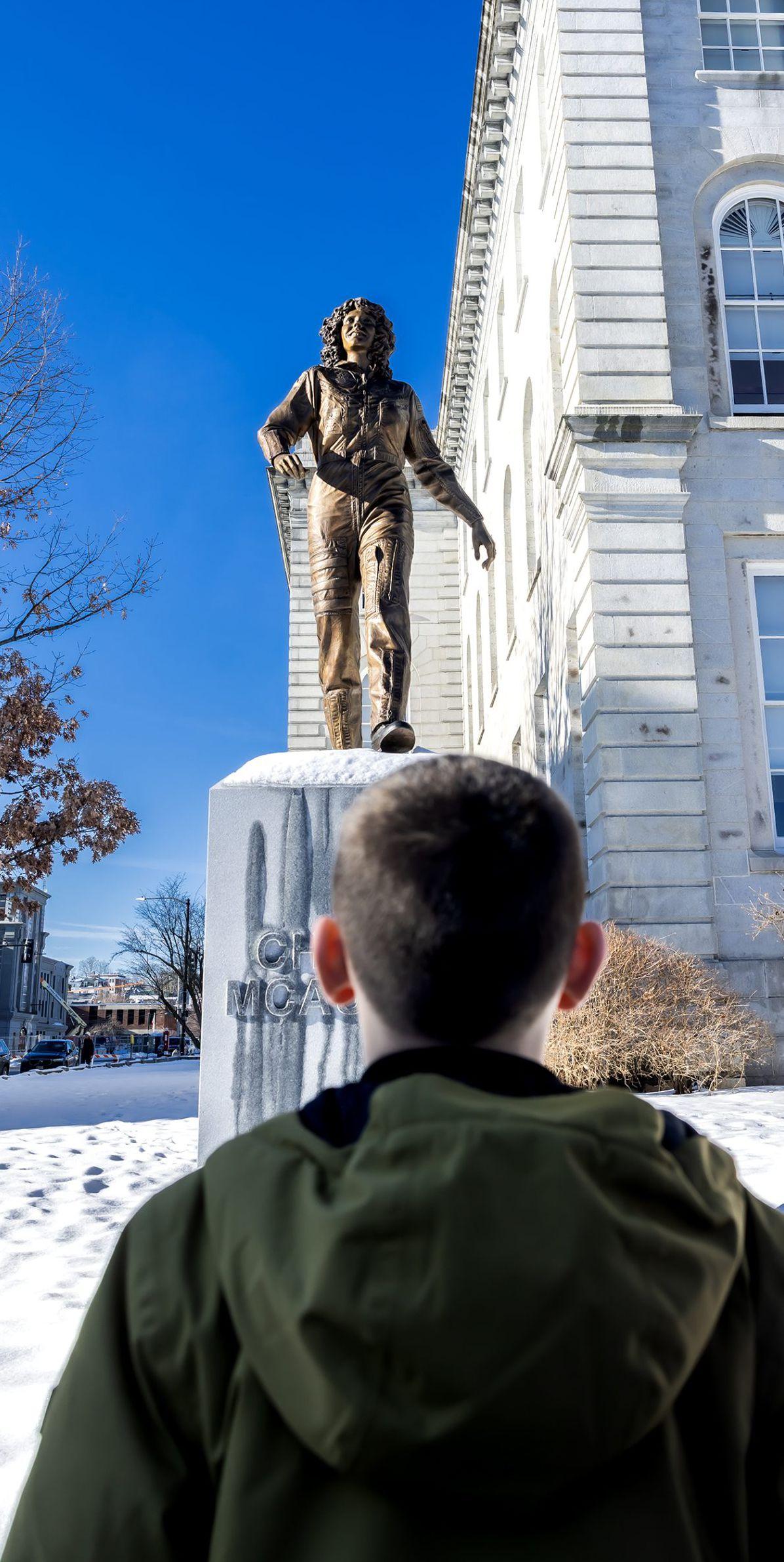 At the State House, the new Christa McAuliffe statue forever enshrines her place as one of a handful of New Hampshire’s greatest citizens. It’s particularly important for the students who visit. They can see Christa McAuliffe as she was: with a smile on her face, looking to the heavens while keeping her feet planted firmly in New Hampshire.
