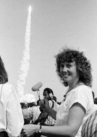 Cblazer with a red rose pinned beneath her collarbone. Hands clasped in front of her, fingers interlaced, she listened patiently as Vice President George Bush made the announcement: She, as a teacher, would be the first private citizen to venture to space.