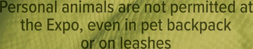 Personal animals are not permitted at the Expo, even in pet backpack or on leashes