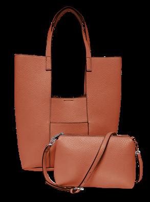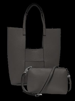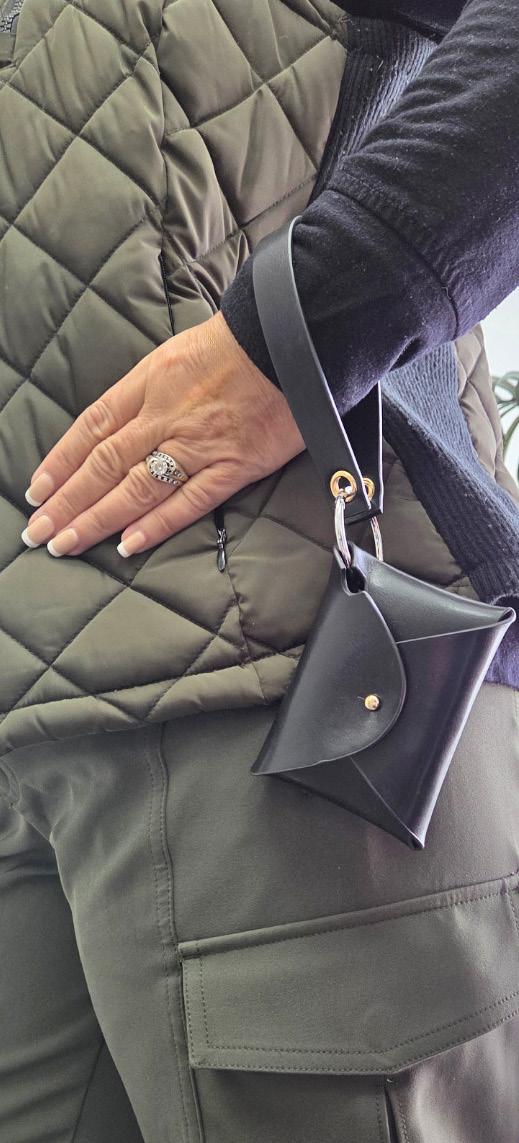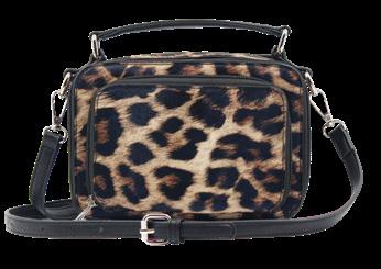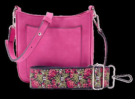 One bag, two looks. Swap your style between the two included (and more available p.40) scarf accents. Enjoy the function of a zippered top, magnetclose front pocket, adjustable strap, RFID protection, and an inside zipper.