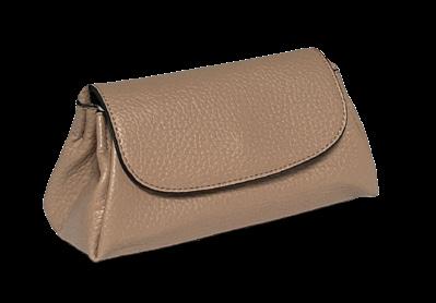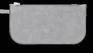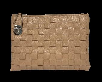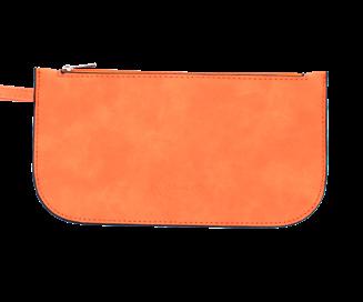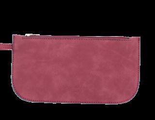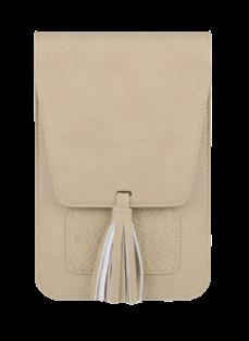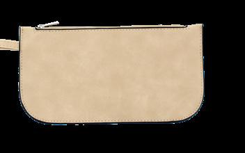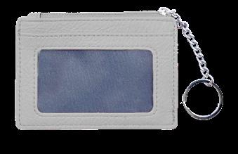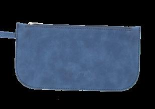 9” W x 4.75” H x .25” D Can fit larger cell phones and a passport. Top zipper closure is 7.25” long. A perfect match to our faux suede Taylor Tote (pg.20)