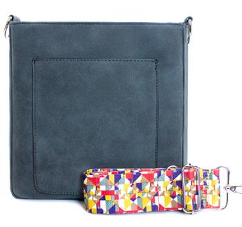 The Ashley crossbody features soft & rich vegan suede with vibrant colors. Unique guitar straps complimenting each design. It also comes with a long strap to match the bag. Other features include an open front pocket, snap closure, interior zipper pocket, and built-in RFID-protected card slots.