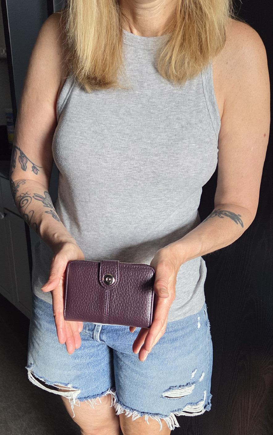 A chic and compact wallet with a magnetic snap, secure zipper, RFID protection, and space for coins, cards & cash — this wallet does it all without the bulk.