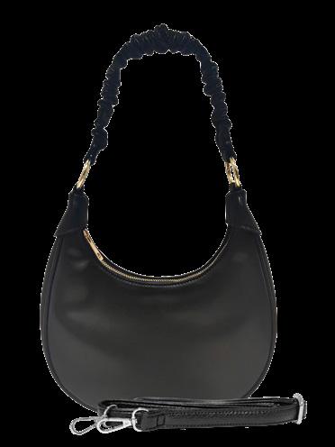 6” W x 9.5” H x3” D | RFID PROTECTED One bag, three looks. This chic oval silhouette can be styled as a bracelet ring bag, a scrunchy-strap hobo, or an adjustable crossbody. Inside, a zippered compartment and RFID-blocking card sleeve make it as practical as it is playful.