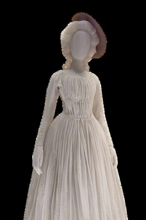 L’exposition du Victoria and Albert Museum retraçait l’évolution stylistique de Marie-Antoinette, de sa jeunesse frivole et son style exubérant et rococo à son désir de simplicité arboré les dernières années passées à Versailles, à l’écart de la cour et des règles strictes de l’étiquette, dans son refuge du Petit Trianon.