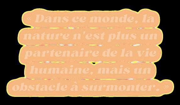 Les icônes de la révolution industrielle, telles que les bateaux à vapeur et les chemins de fer alimentés au charbon, laissent derrière elles de la fumée, de la pollution et une demande toujours croissante en carburant. Dans ce monde, la nature n'est plus un partenaire de la vie humaine, mais un obstacle à surmonter