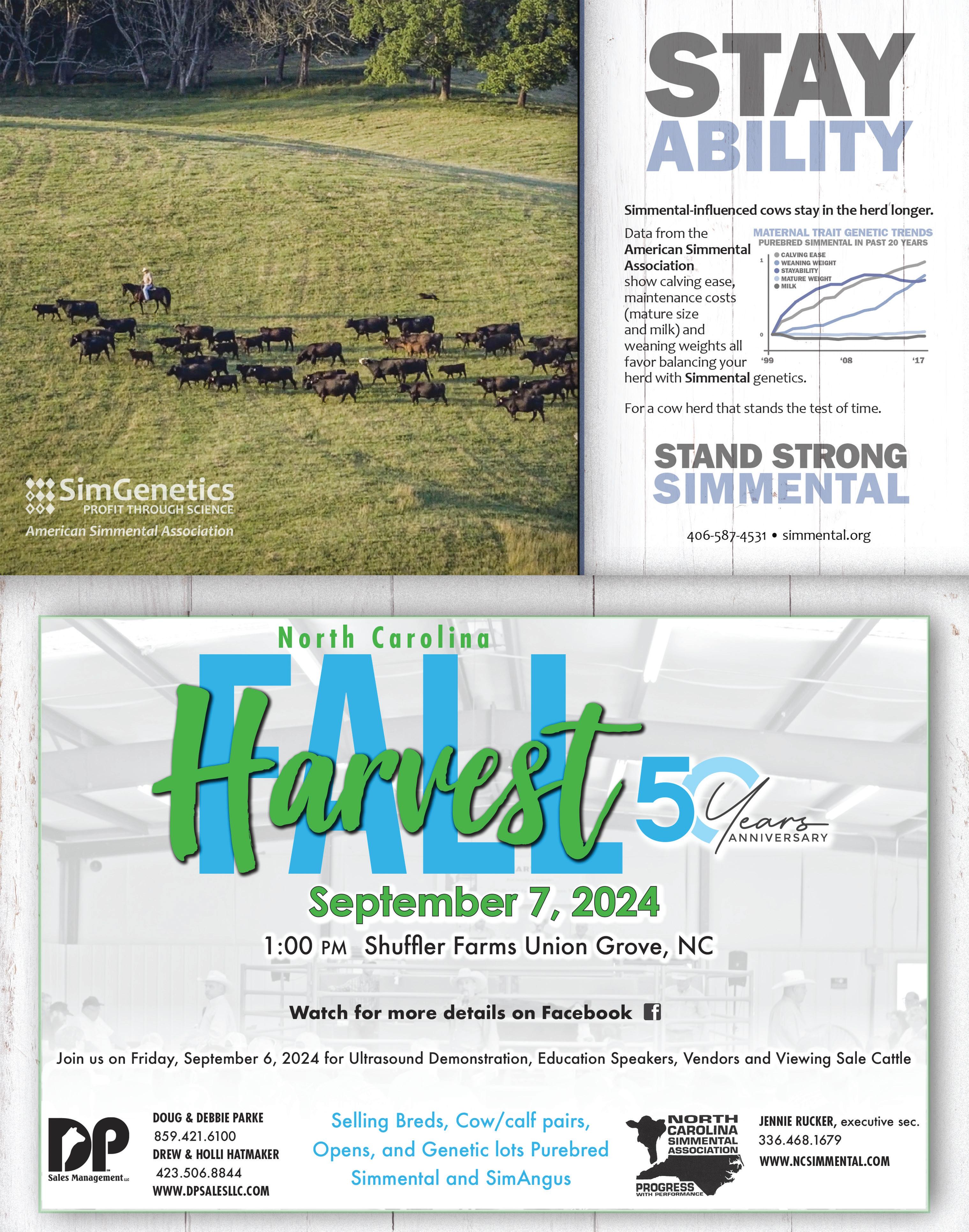 Sep. 7 — N.C. Simmental Association Fall Harvest Sale, Union Grove, N.C.