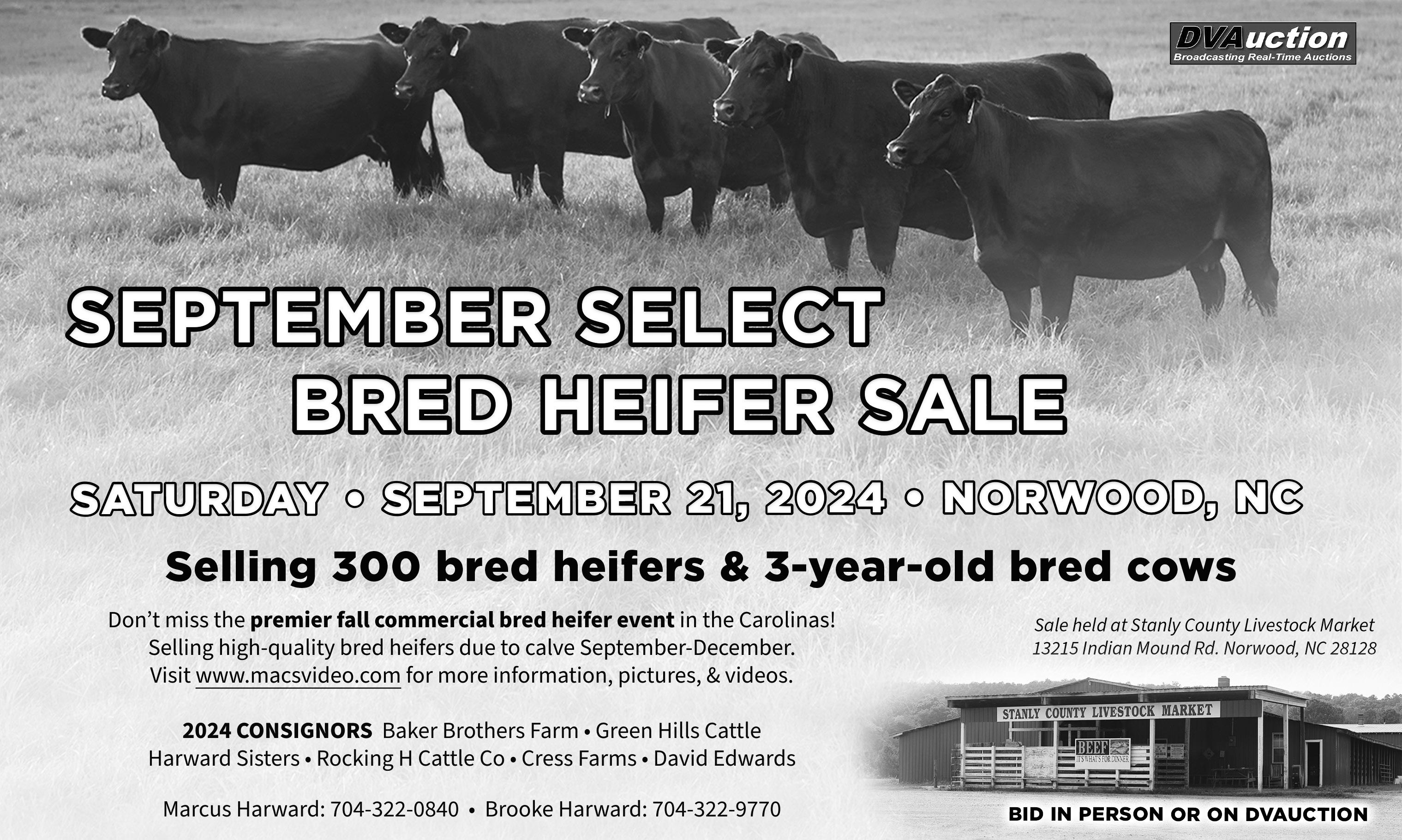 Sep. 21 — September Select Bred Heifer Sale, Norwood, N.C.
