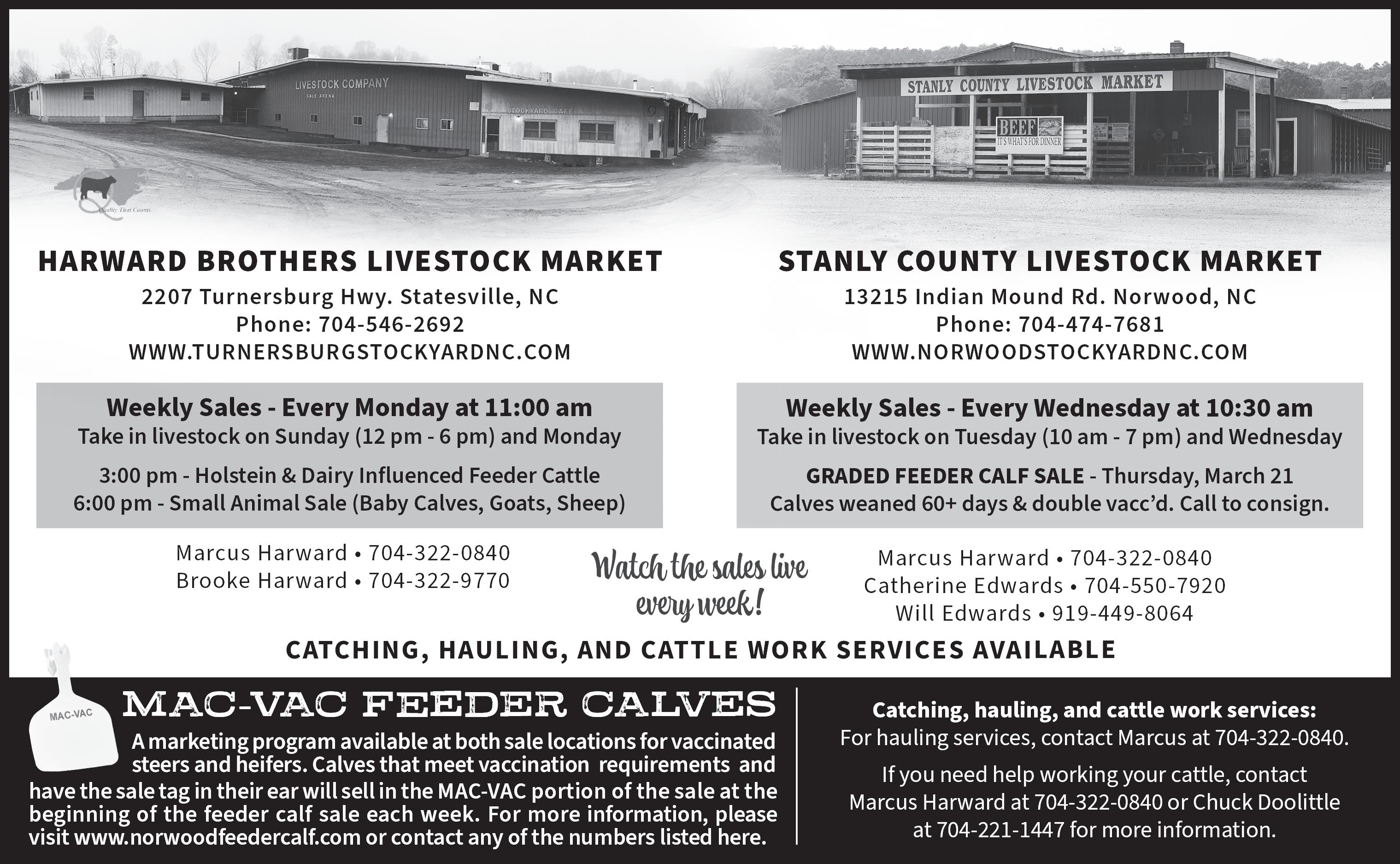 Mar. 11 — Harward Brothers Livestock Market Weekly Sale, Statesville, N.C.