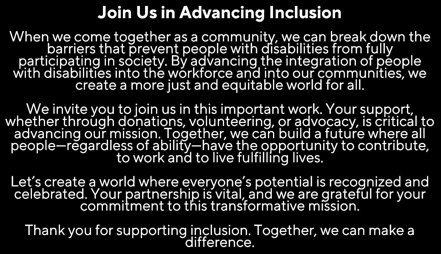 SUPPORTINGTHEDISABILITYCOMMUNITY THROUGHFUNDRAISING,ADVOCACY,AND PARTNERSHIPS.