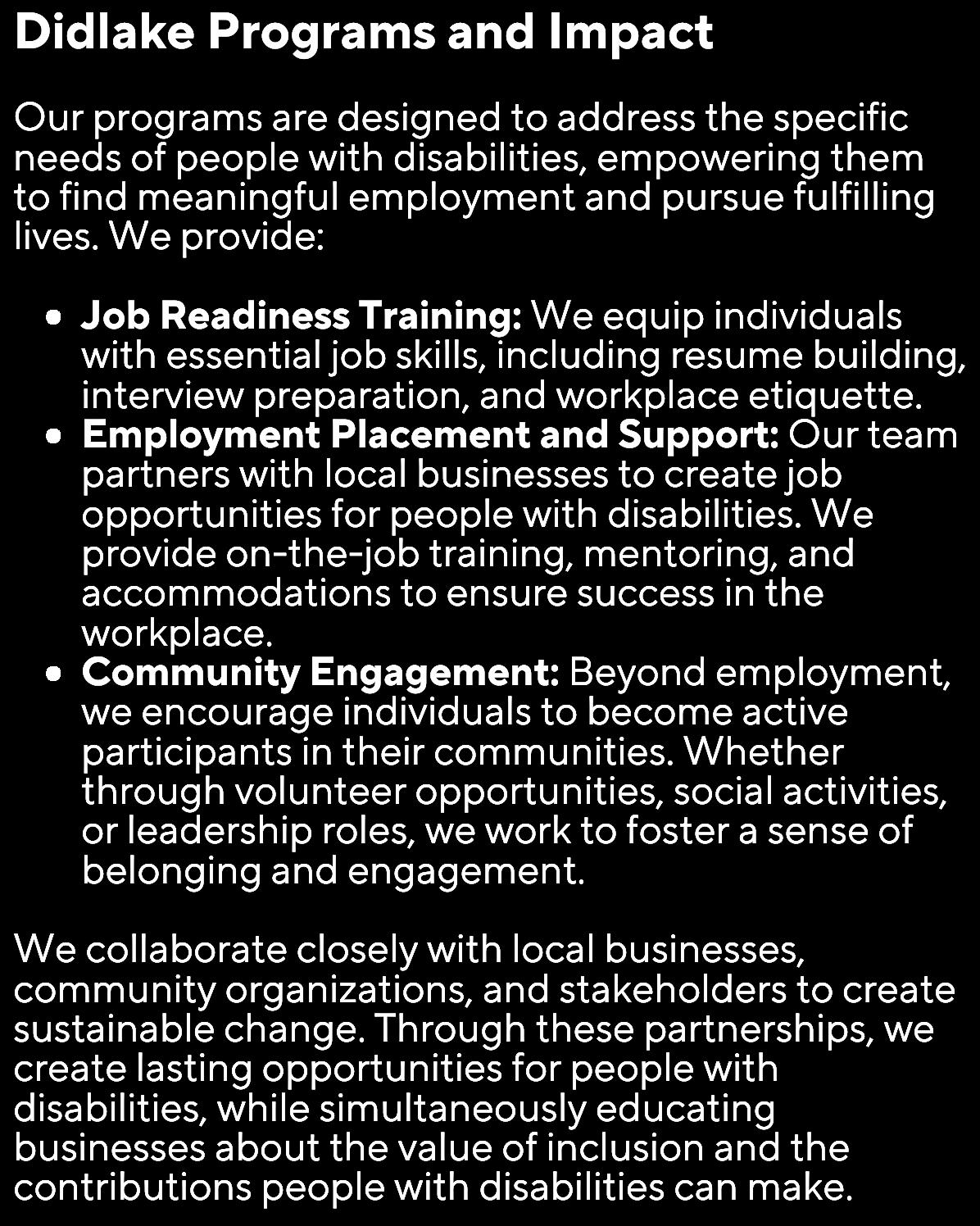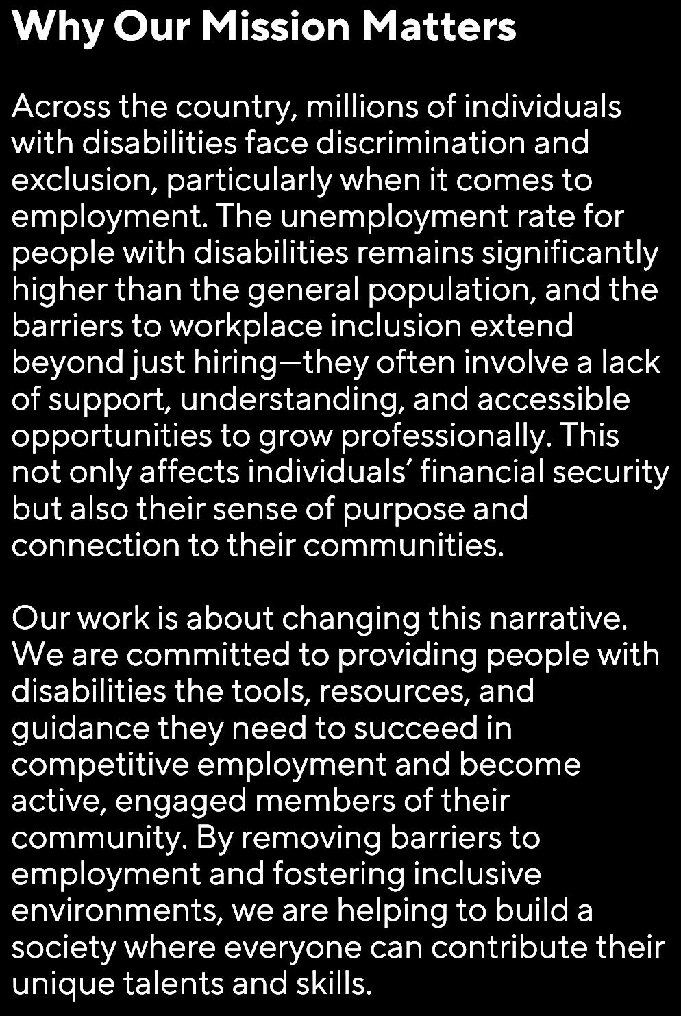 EMPOWERINGTHEDISABILITYCOMMUNITYBY ELIMINATINGBARRIERS,CREATINGOPPORTUNITIES ANDFOSTERINGINCLUSIVECOMMUNITIES.