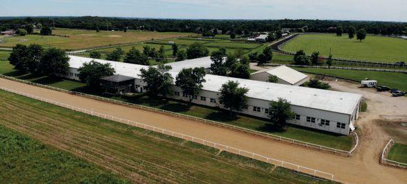 SHADAYID STUD—Consisting of 839 ± acres on both sides of Leestown Road, in highly desirable Woodford County. Te North Side (587 acres) features 6 concrete block barns with 84 stalls, ofce, and 3 employee houses with the South Elkhorn Creek along the farm’s rear border. Te South side (252 acres) features 44 stalls, show barn, rehab barn, 3 hay barns, shop, and 4 employee houses. Painstakingly developed into the premier horse farm it is today!