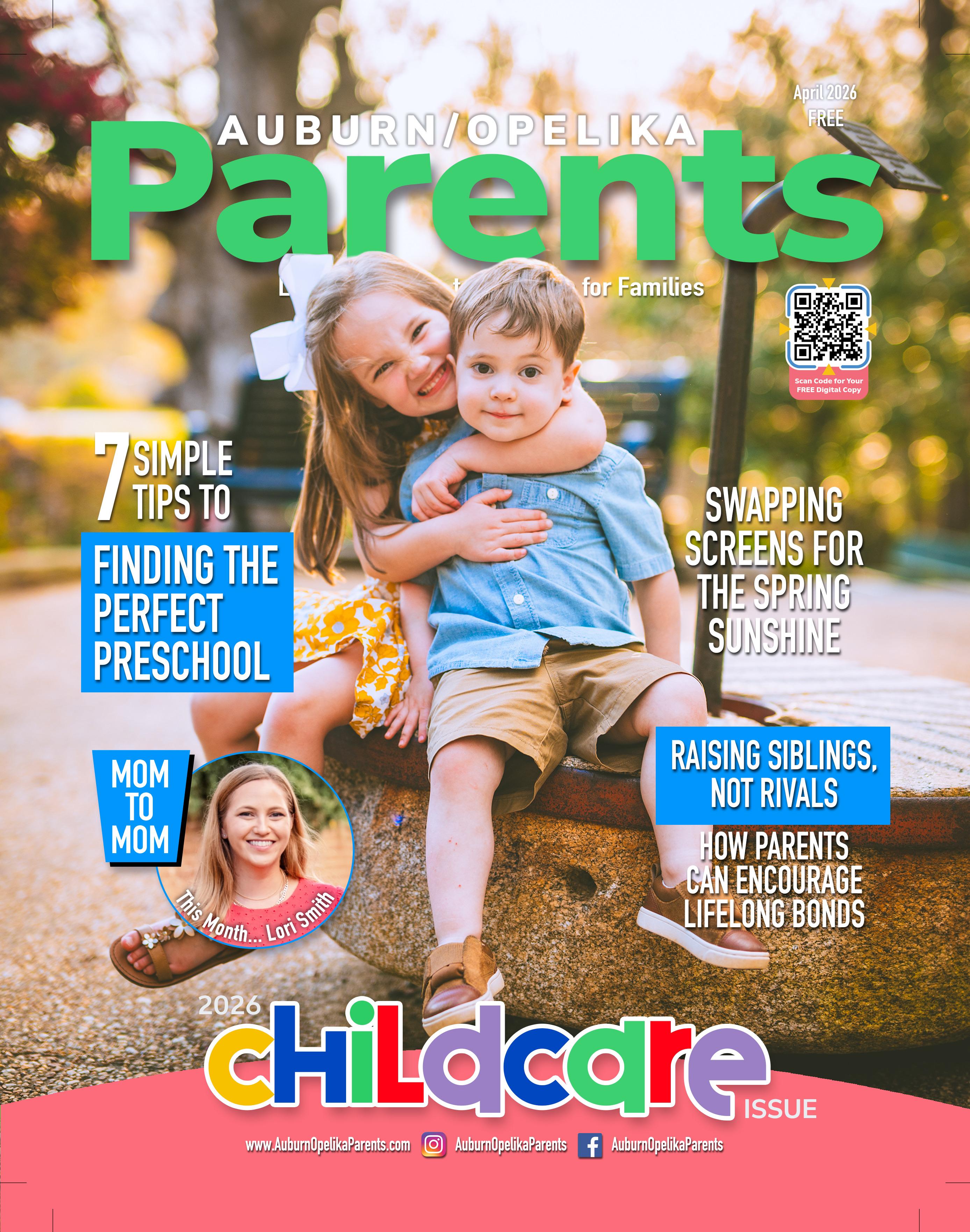 Auburn-Opelika Parents magazine is published monthly by KeepSharing, LLC. Mailing address: 475 Bennington Ct, Auburn, Alabama, 36830. The phone number is (334) 329-8073 and fax is (334) 826-7303. Auburn-Opelika Parents is copyrighted 2026 by KeepSharing LLC. All rights reserved. Reproduction in whole or part without written permission is prohibited. Opinions expressed in Auburn-Opelika Parents magazine are those of the authors and do not necessarily reflect the view of the owners, nor do they constitute an endorsement of products and services herein.