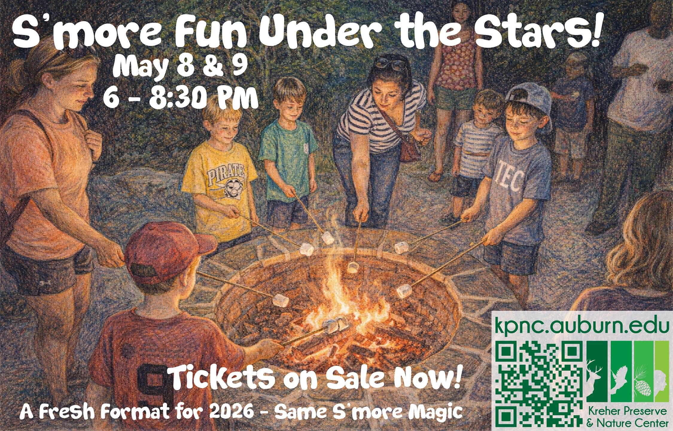6:00 PM - 8:30 PM, Kreher Preserve & Nature Center, 2222 North College St, Auburn Join us for S’more Fun with Families, Lee County’s mother/ children adventure, co-hosted by the Kreher Preserve & Nature Center and the City of Auburn. This fun evening will include a night hike, cookout, storytelling, and of course s’mores! Our mother/child duos may visit a craft station to create their own keepsake art project. natureeducation@auburn.edu
