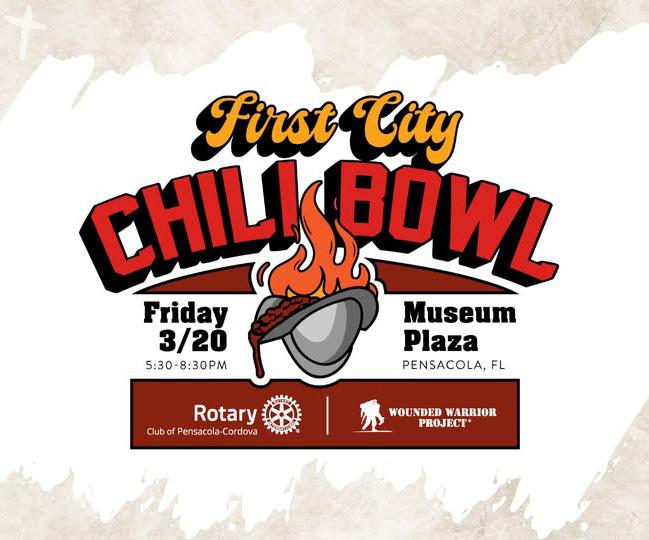 The First City Chili Bowl is heating up downtown Pensacola on Friday, March 20, 2026, from 5:30–8:30 PM at Museum Plaza. Join us for a fun-filled night of chili, charity, and community—right around the corner from Gallery Night. Your $20 ticket (kids 5 & under free) includes unlimited chili samples, live music, and access to a cash bar. Attendees can vote for their favorite teams in two categories: Classic Red and Freestyle Fire.