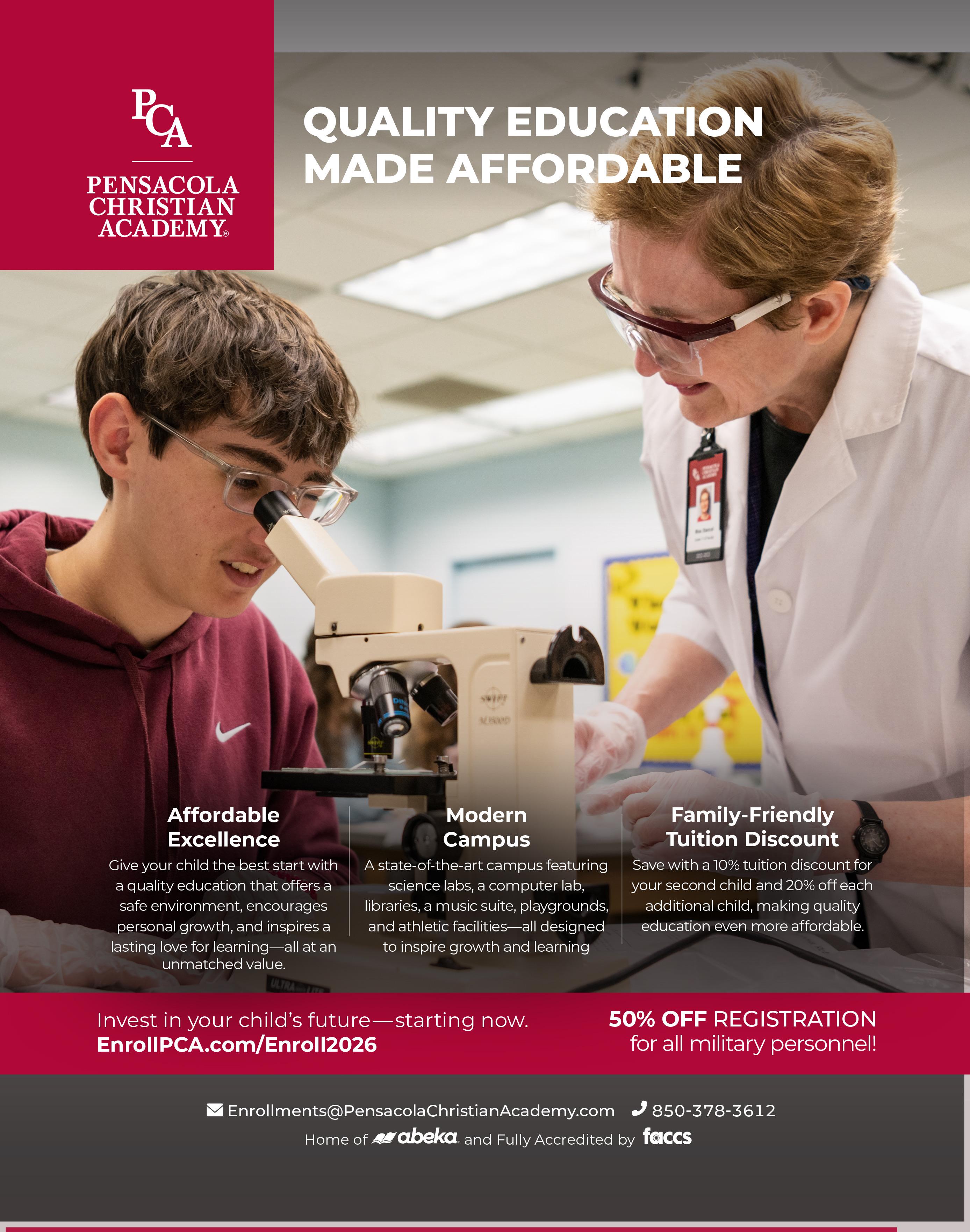 Greater Pensacola Parents magazine is published monthly by KeepSharing, LLC. Mailing address: PO Box 6241 Pensacola, FL 32503. The phone number for voice and fax is (850) 426-6222. Greater Pensacola Parents is copyrighted 2026 by KeepSharing LLC. All rights reserved. Reproduction in whole or part without written permission is prohibited. Opinions expressed in Greater Pensacola Parents magazine are those of the authors and do not necessarily reflect the view of the owners, nor do they constitute an endorsement of products and services herein.