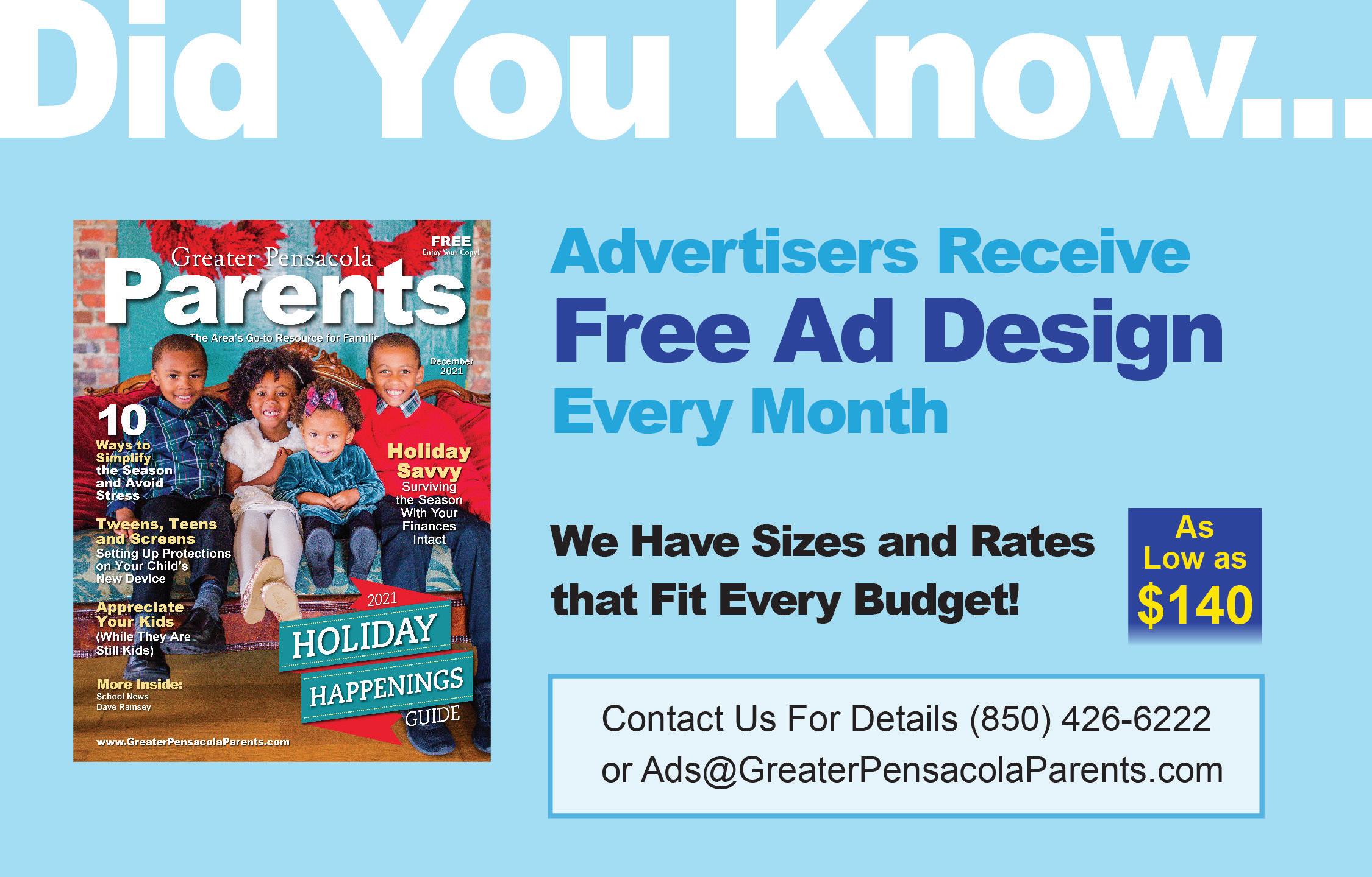 Greater Pensacola Parents Magazine is founded on the principle that parenting is an exciting, diverse, challenging, and significant role in our community. Greater Pensacola Parents Magazine is a community advocate for families and the parenting process.