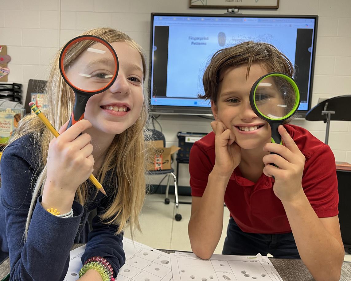 Third-grade students at Aletheia Christian Academy have been learning about fingerprints and were treated to a special visit from CSI techs. The techs demonstrated how to properly dust for fingerprints and allowed the students to transfer their own prints onto paper. Using magnifying glasses, students became detectives and searched around the classroom to see if anyone had the same fingerprints. It was a fun and fascinating way to discover how uniquely God created each of them.