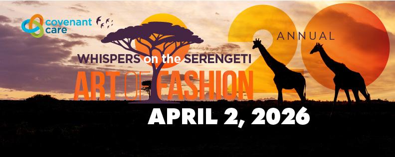 Join us for our 20th Annual Art of Fashion: Whispers on the Serengeti on Thursday, April 2, 2026, at the Pensacola Bay Center, presented by the Pensacola Ice Flyers Foundation to benefit Covenant Care.