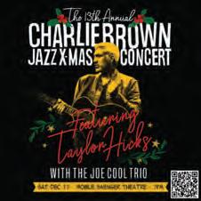 Don’t miss the 13th annual Charlie Brown Jazz Christmas featuring Taylor Hicks! This family-friendly Mobile Christmas tradition will be Saturday, December 17, 6pm at Mobile Saenger Theatre. Attendees will enjoy a performance by The Joe Cool Trio – John Milham (drums), Chris Spies (piano), and Chris Severin (bass) - performing Vince Guaraldi’s Masterpiece Soundtrack, A Charlie Brown Christmas. This year’s show will also feature the musical gifts of singer, songwriter and American Idol winner, Taylor Hicks! Tickets can be purchased online at bit.ly/cbjazz22. The historic Saenger Theatre building is not elevator equipped.