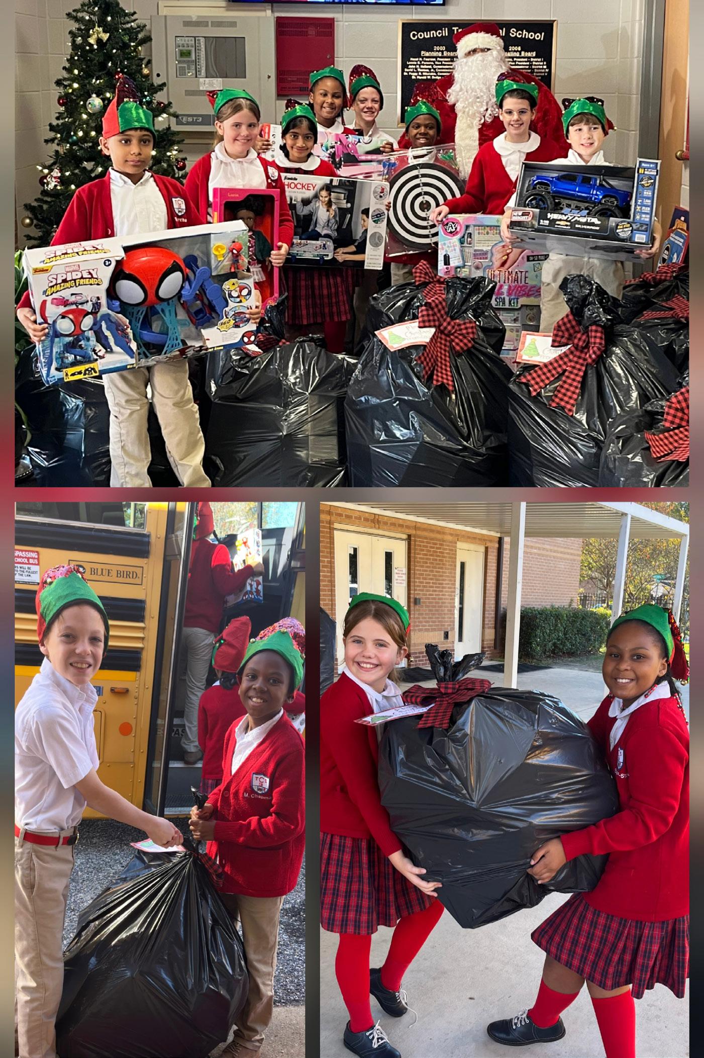 Mobile County Public Schools collected about 6,200 toys and gifts from 45 schools and Central Office in its annual Stuff the Bus toy drive. The MCPSS Social Services Department distributed many of those donations to needy students within the school system. Burns Middle School LOTC cadets unloaded and sorted the rest at the Salvation Army’s collection site to make the holiday season a little brighter for families throughout the Gulf Coast. Stuff the Bus was organized by the MCPSS Office of Communication and the MCPSS Transportation Department (along with Santa & Mrs. Claus) put in the miles to collect the donations.