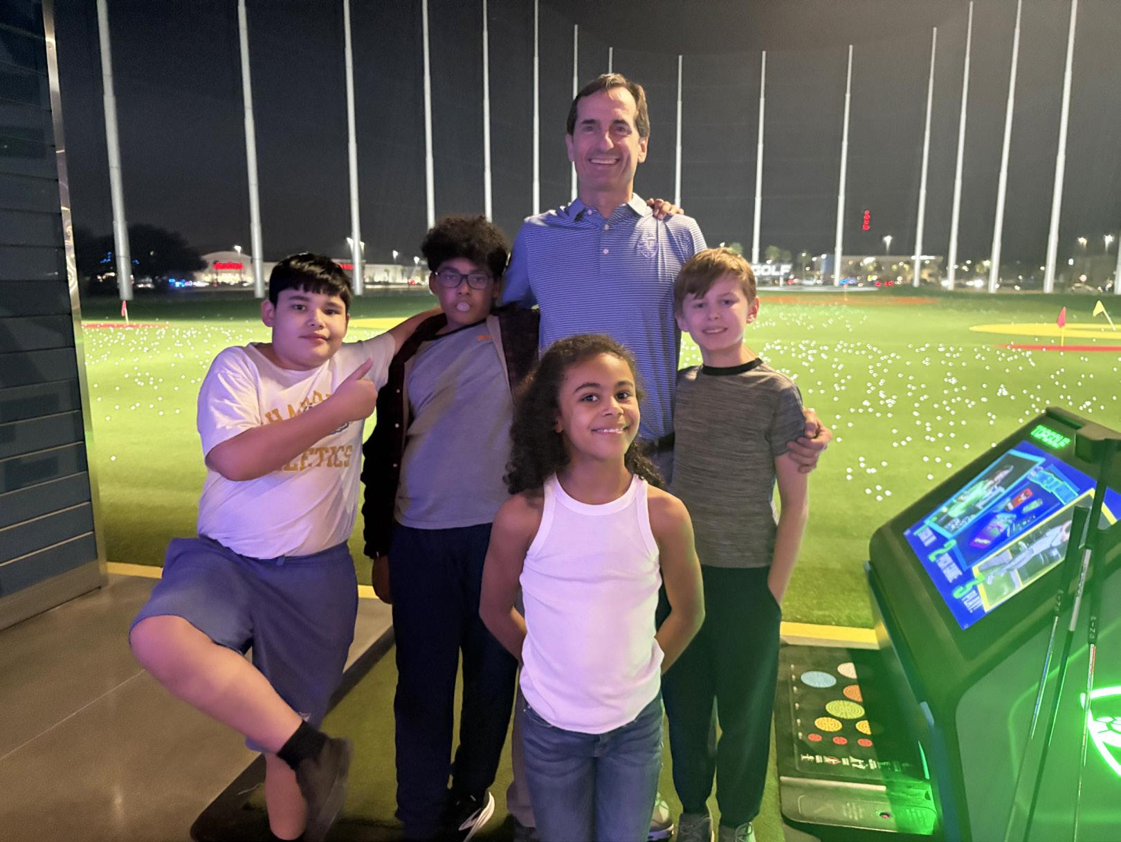 Fr. Patrick Driscoll enjoyed golf practice with students from St. Dominic Catholic School. These students earned this opportunity as a redeemed auction item from the school’s fundraising Extravaganza.