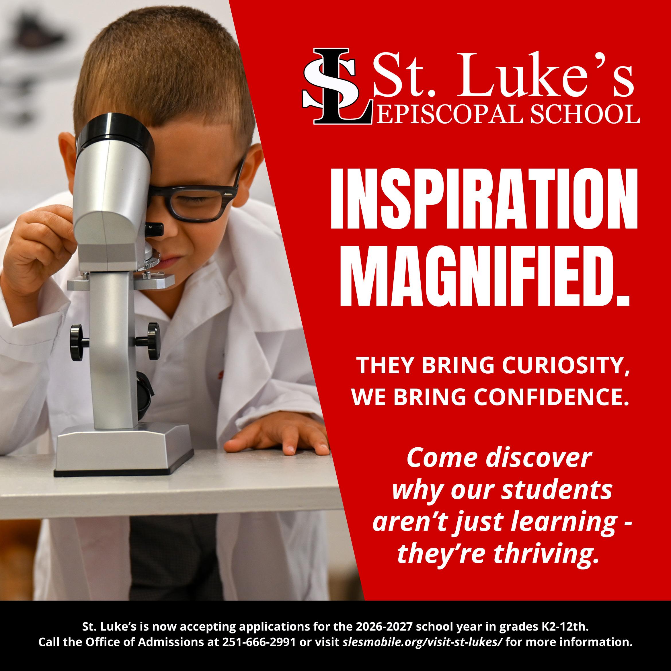 6:30 PM St. Luke’s Auditorium, 1400 University Blvd Mobile, AL, 36609 St. Luke’s Center Stage Presents The SpongeBob Musical Youth Edition. https://bngn.blackbaud.school/?id=fx5so441ge5