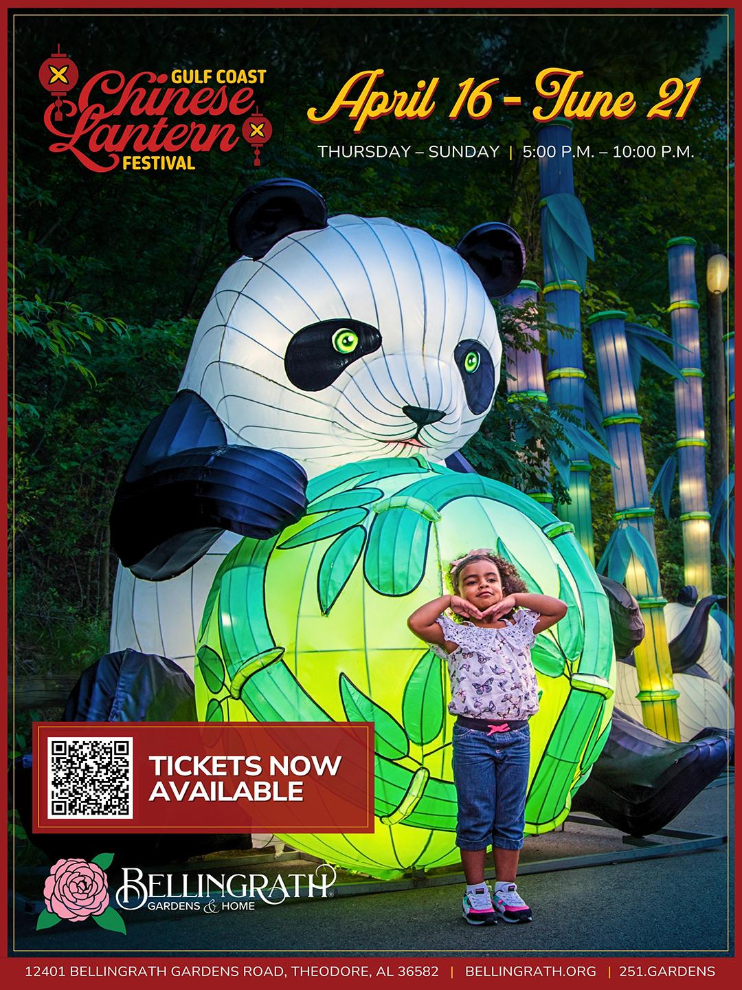 5:00 PM - 10:00 PM, Bellingrath Gardens and Home, 12401 Bellingrath Gardens Road Theodore, AL, 36582 Join us for the 2026 Gulf Coast Chinese Lantern Festival as Bellingrath Gardens & Home transforms into a breathtaking display of light and artistry. As night falls, the Gardens will turn into a luminous dreamscape, where over 40 towering, handcrafted light sculptures glow with vibrant colors, lighting the landscape with interactive artistry and imagination.