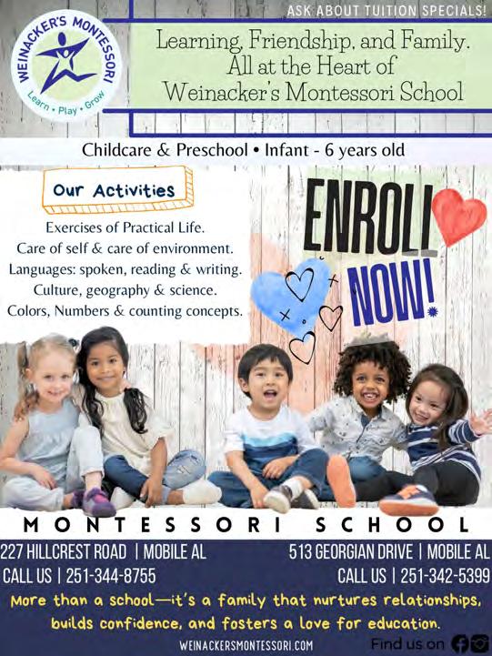 Mobile Bay Parents magazine is published monthly by KeepSharing, LLC. Mailing address: P.O. Box 81105, Mobile, Alabama, 36689. The phone number for voice and fax is (251) 304-1200. Mobile Bay Parents is copyrighted 2025 by KeepSharing LLC. All rights reserved. Reproduction in whole or part without written permission is prohibited. Opinions expressed in Mobile Bay Parents magazine are those of the authors and do not necessarily reflect he view of the owners, nor do they constitute an endorsement of products and services herein.