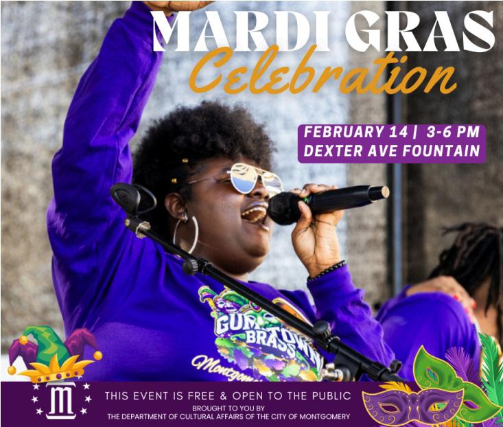 Get ready for a night of music, dancing, and festive fun at the Mardi Gras Block Party, hosted by City Events here in the City of Montgomery. This free, family-friendly event brings the heart of Mardi Gras to downtown Montgomery with electrifying performances by Grammy Award Winning Buckweat Zydeco Jr. & The Legendary Ils Sont Partis Band straight out of New Orleans and a second line going straight down Dexter Avenue led by the high-energy sounds of the Gumptown Brass. Visit www.montgomeryal.gov/play/city-events