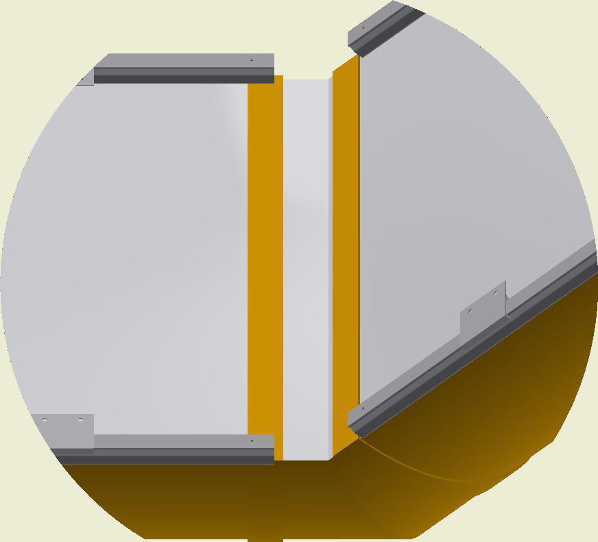 Indvendigt hjørne skal fastgøres med minimum en skrue i enten væg eller loft.