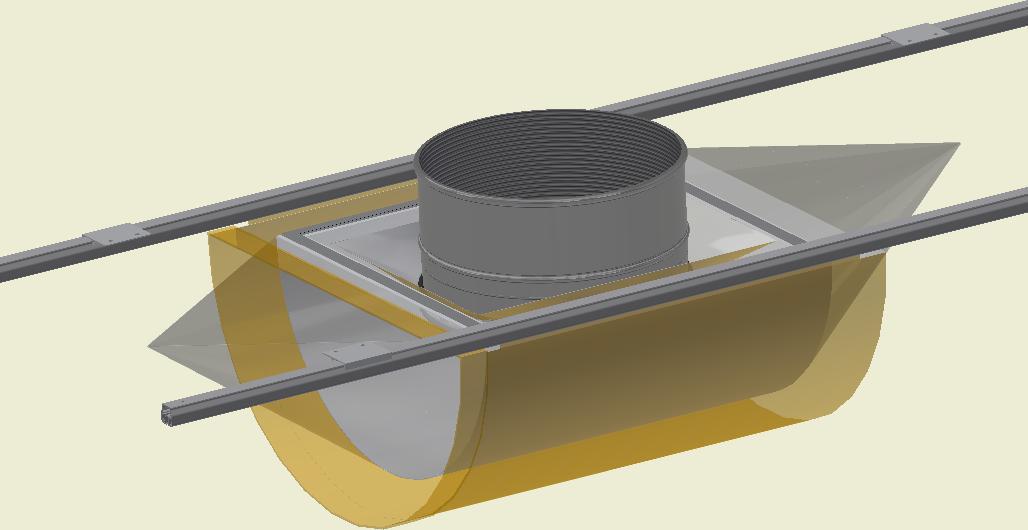 Wenn die Montage des Stutzens über der Rasterdecke/ Decke erfolgen kann, ist ein Reißverschluss an dem Stutzen nicht erforderlich.