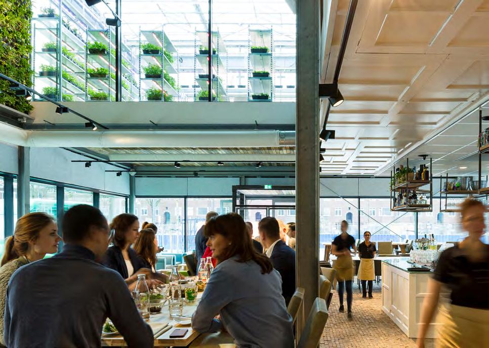 Cradle to Cradle-sertifisert ventilasjonskanal monteret i restaurant. Den bærekraftige løsningen gir en trekkfri luftfordeling og dermed et godt inneklima for husets gjester.
