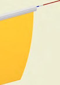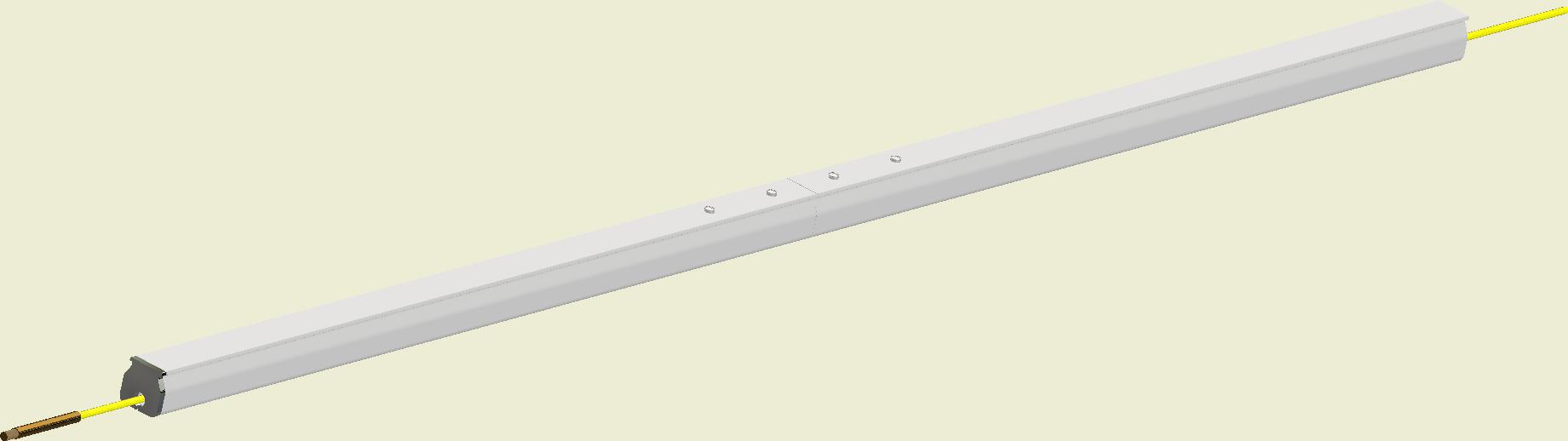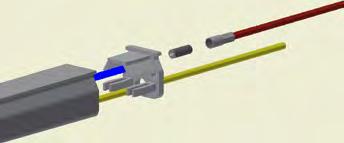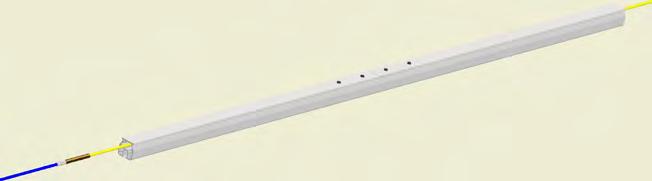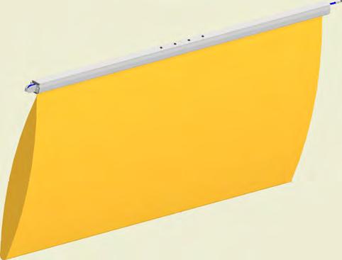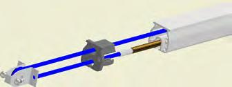 Wenn der Textilkanal in der Schiene montiert worden ist, den Kanaleinlass mit dem Stahlkanal verbinden. Den SafeStretch Fastener unter das Spannband am Kanaleinlass einführen. Spannband anziehen, um den Textilkanal und Fastener am Platz zu halten. Anschließend den SafeStretch Fastener mit zwei Schrauben zum Ende der Schiene festmachen.