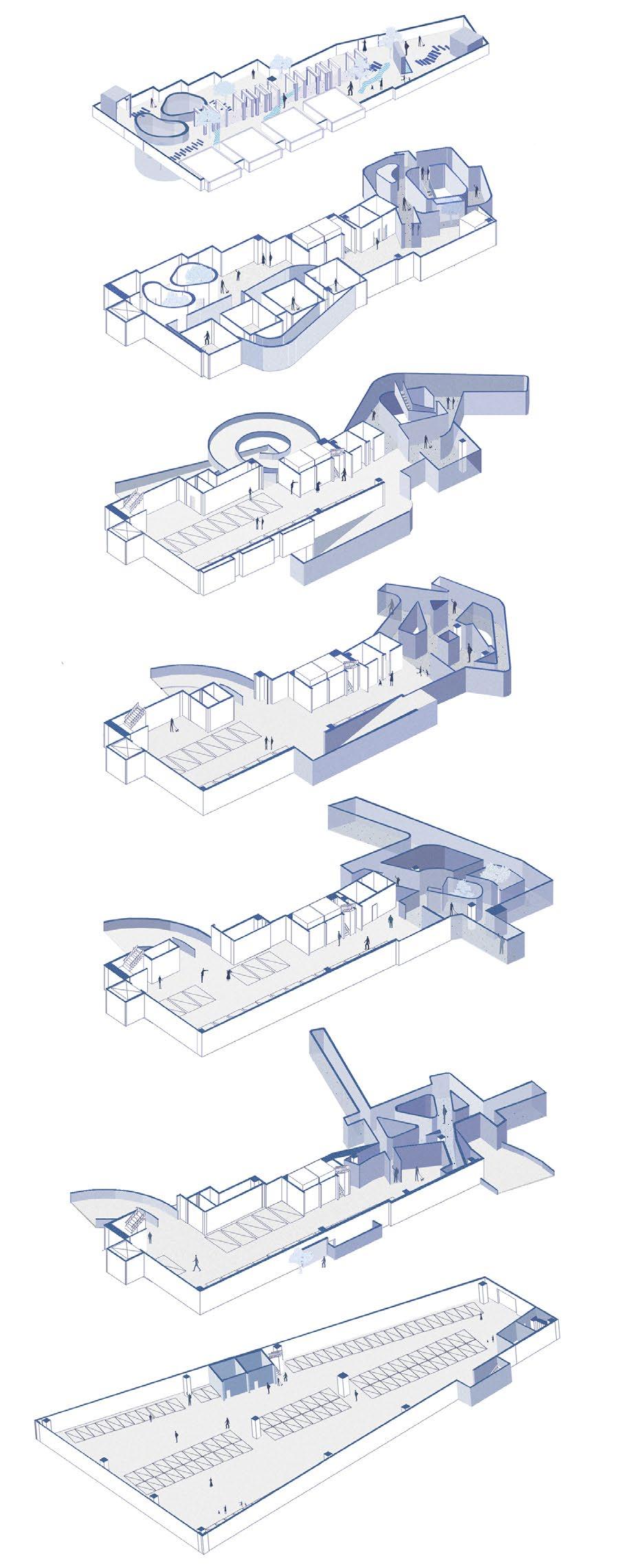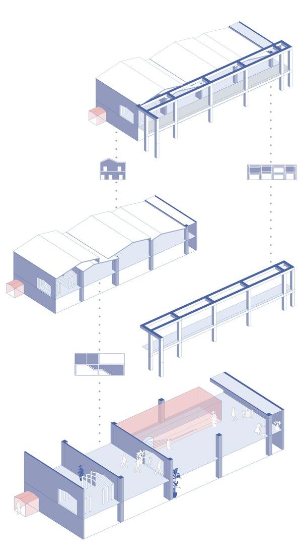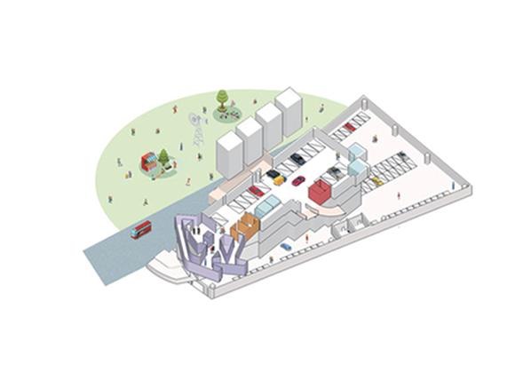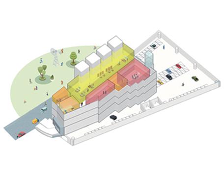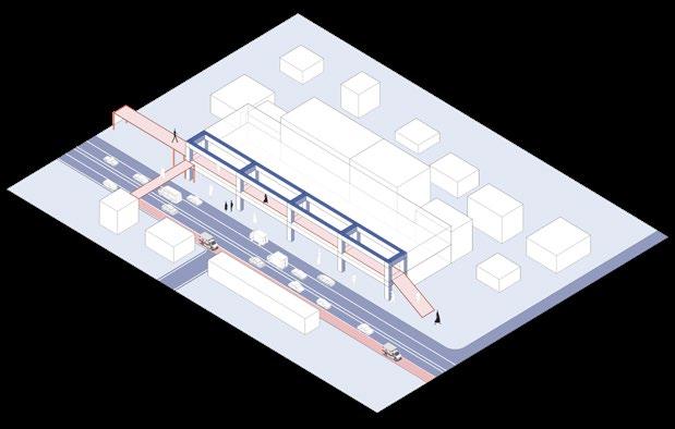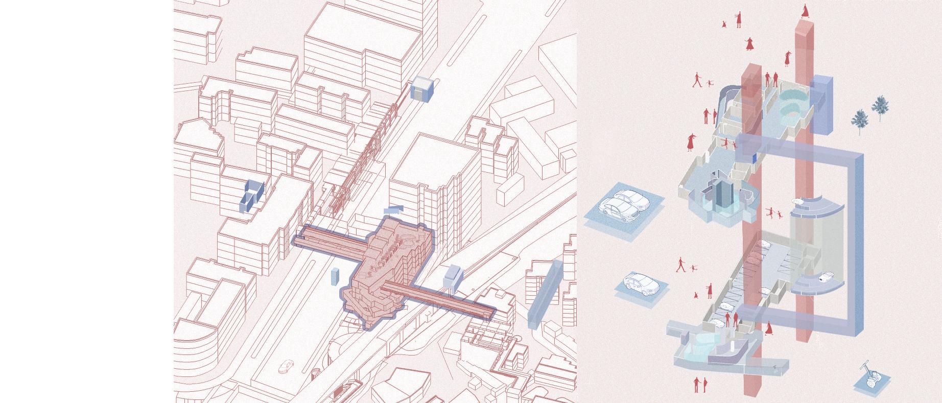 Another factor contributing to traffic issues at the site is the demand for additional parking facilities. Many commuters park their cars nearby and use the subway for their daily commute. To address this need, I repurposed an abandoned office building into a parking structure. Positioned at the heart of the traffic hub, this building serves primarily as a parking facility. Its strategic location aims to provide not just parking convenience but also accessibility, establishing a comprehensive community parking system.