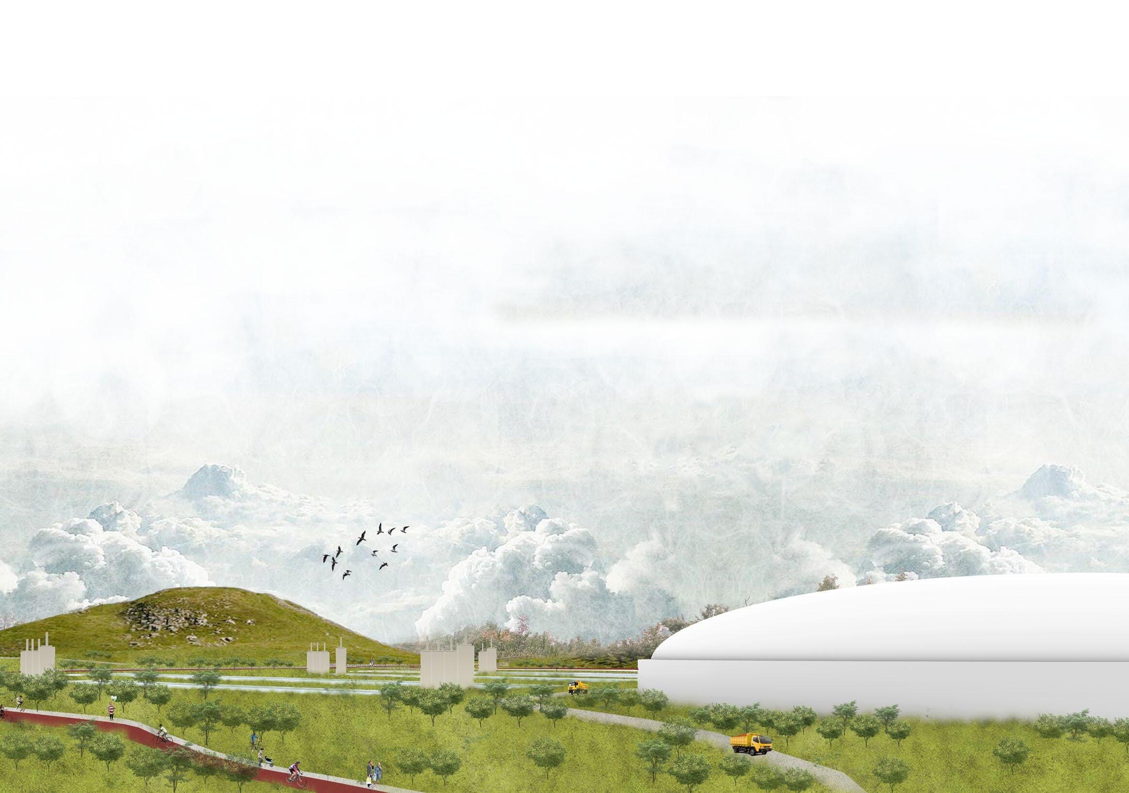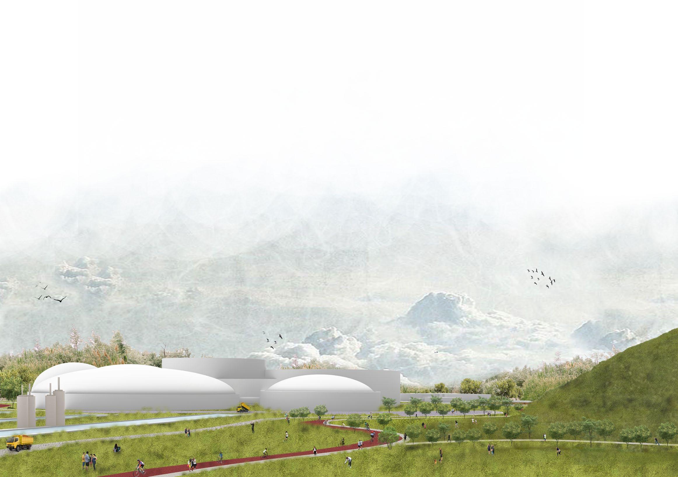 According to the landform characteristics of the design site, the biogas digester and pyrolysis equipment are arranged in the flat area on the north side. The walkway is set in the hilly area on the south side, overlooking the entire treatment plant.