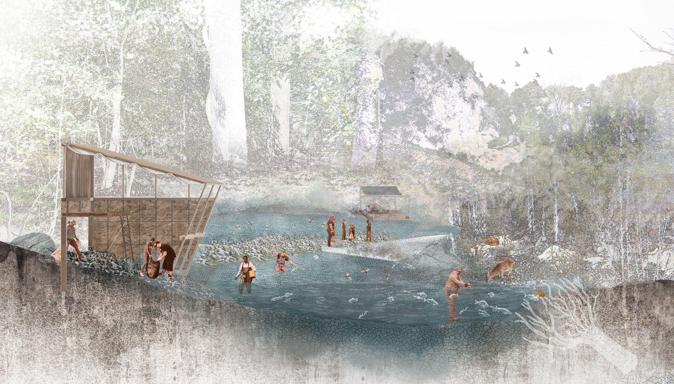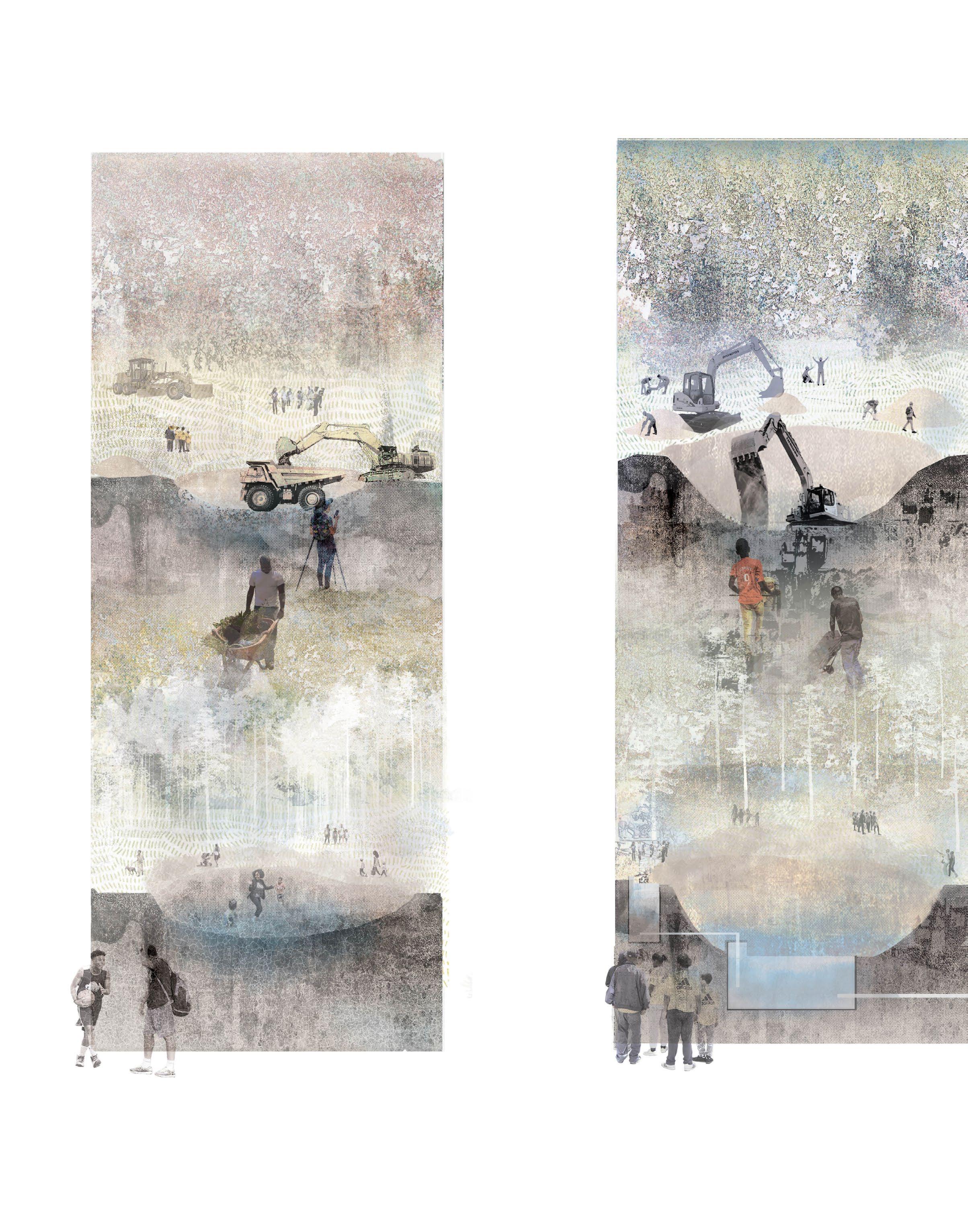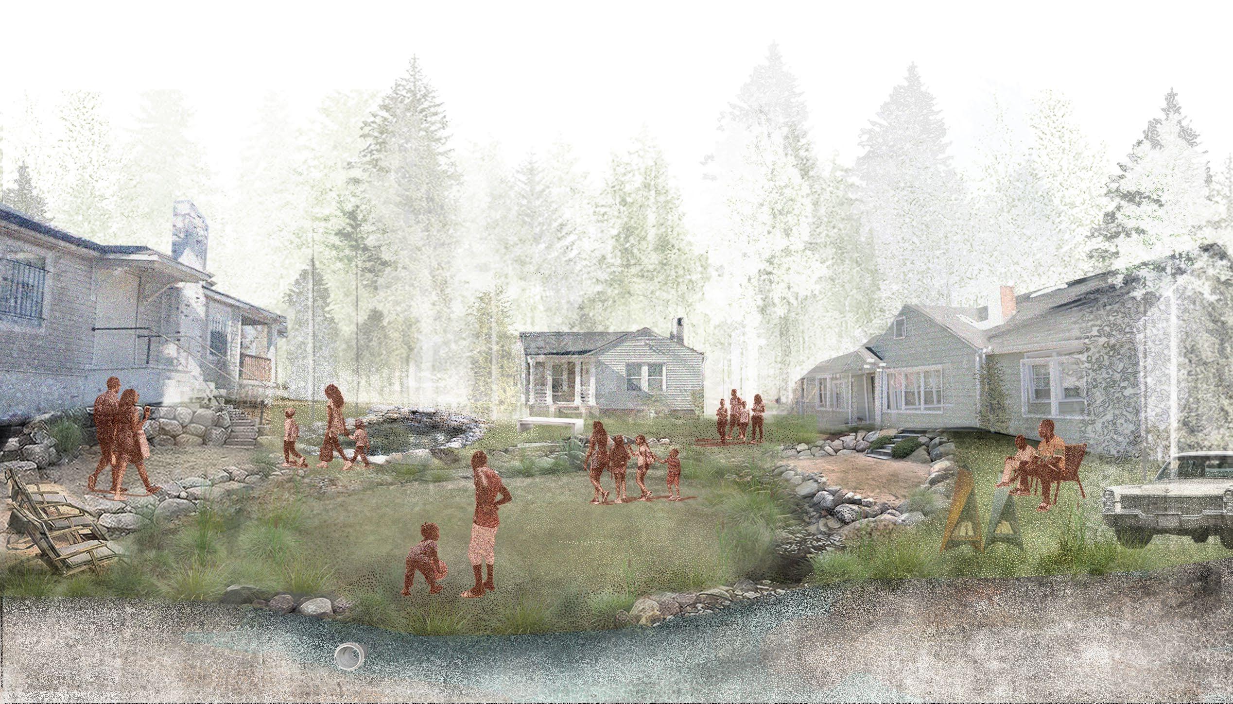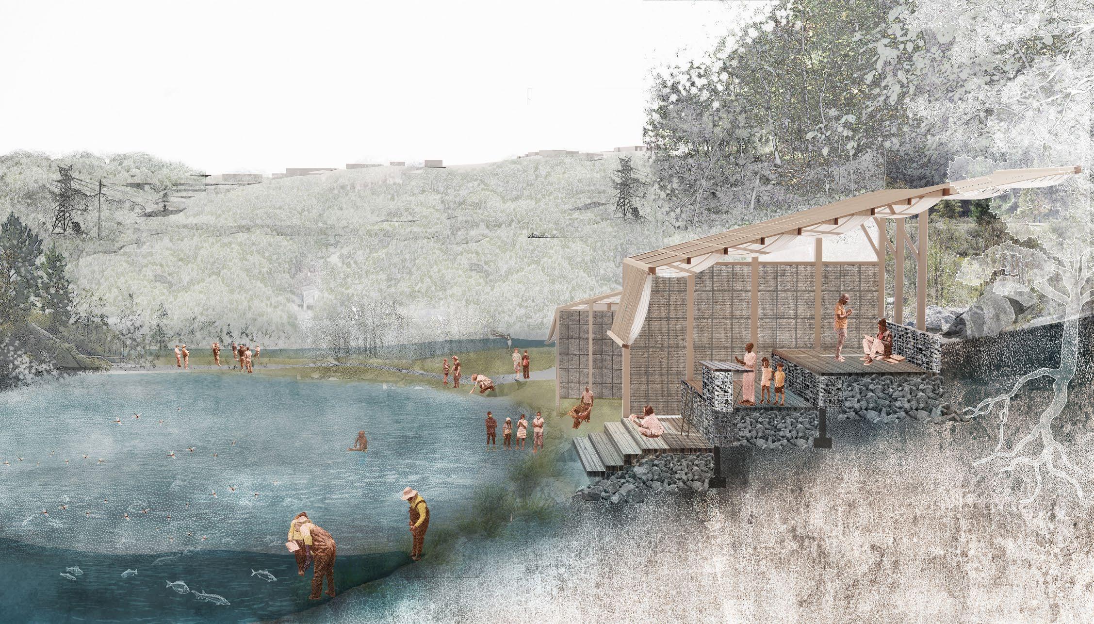Our appreciation of the cyclic nature of systems translates into a proposal of a series of water bodies, created through shallow excavations by collective effort from the neighborhood, reclaiming the act of excavation. The pools honor the natural ebb and flow of water and allow people to meander closer to the creek and quarry.