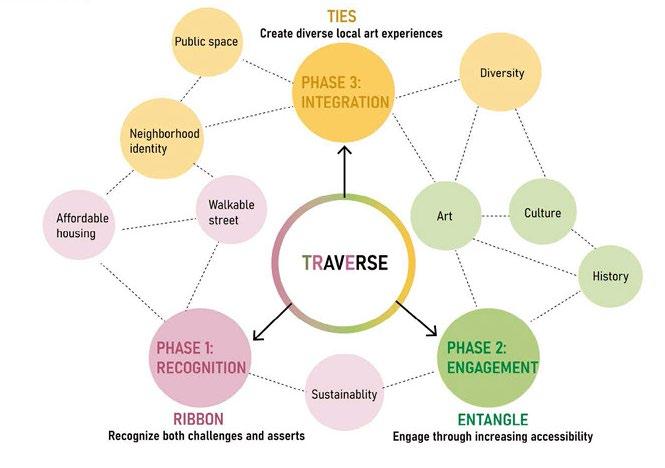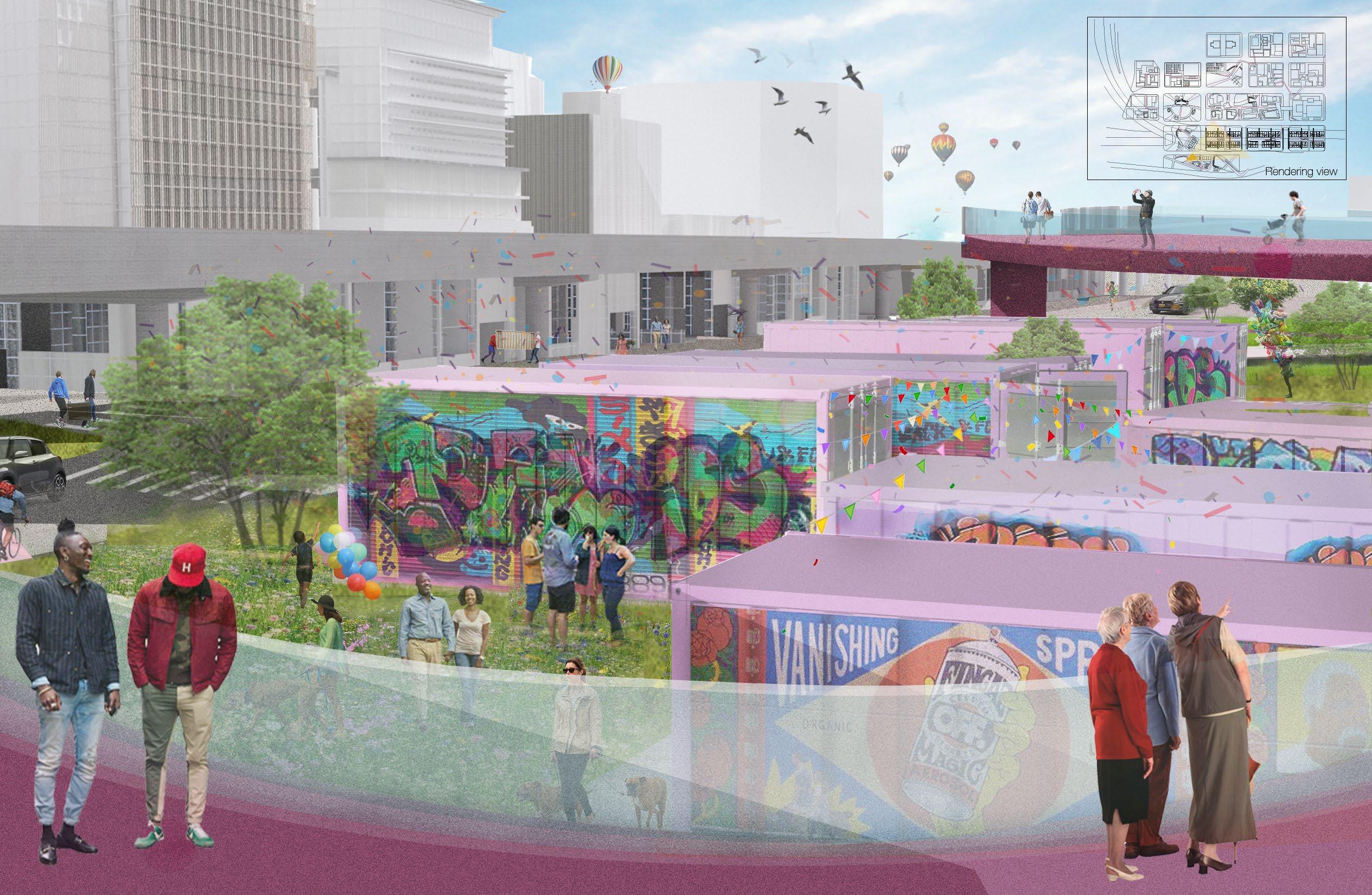 Old Oakland, as its name implies, has been recognized as an economically declined district of downtown Oakland. Our proposal, the Traverse, revitalizes this historic neighborhood and strengthens its connection to the city. Inspired by ribbons, our proposal demonstrates the bond between people and the environment. Traverse strives to build meaningful connections both internally and externally with its surrounding neighborhoods. This resilient neighborhood with high connectivity is a pleasant place to explore and traverse in Oakland.