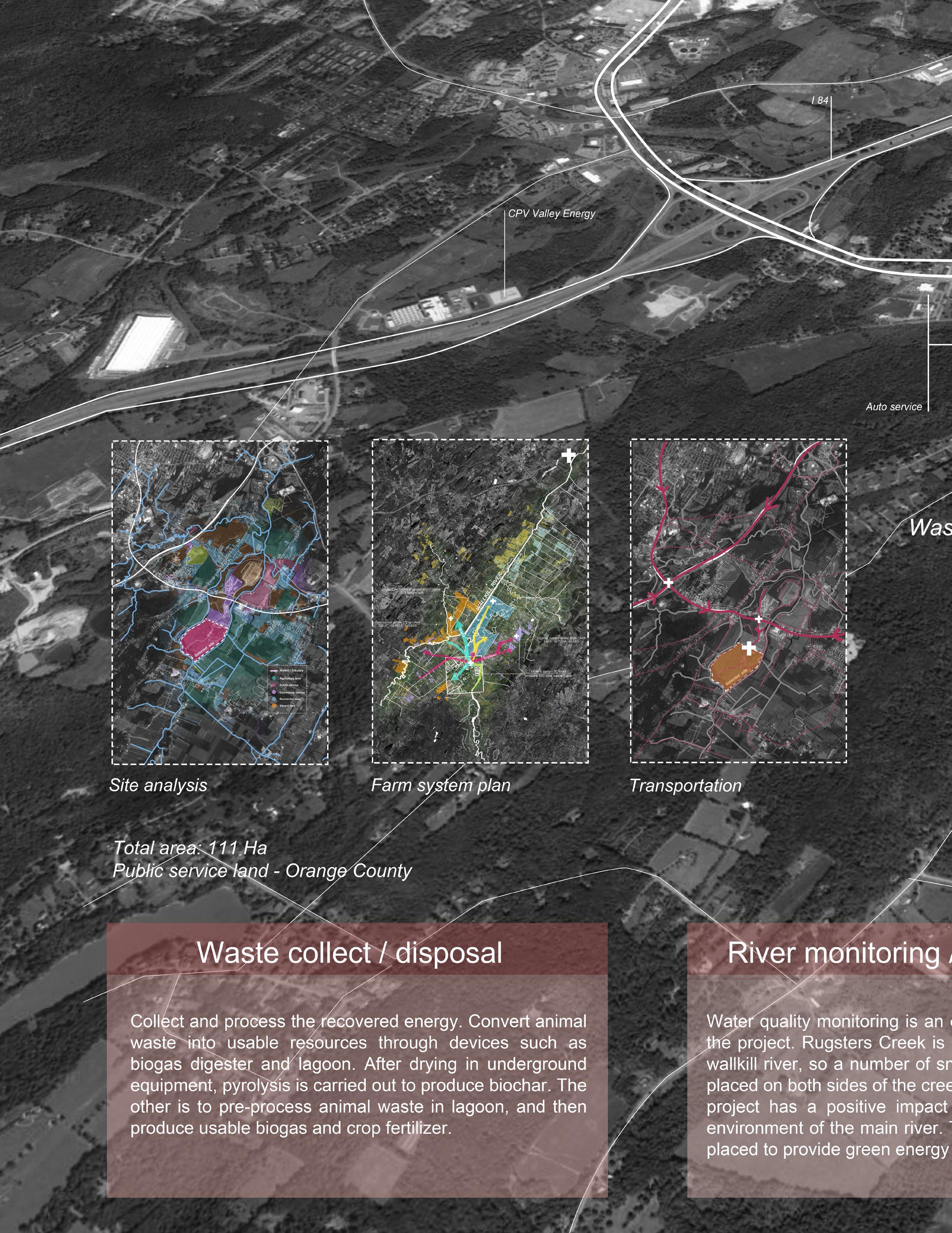 The ideal location for the design site should be within a densely populated livestock farming area to streamline the centralized management and transportation of goods. Following a thorough field investigation, I identified an undeveloped public property owned by the Orange County government at 21 Training Center Ln as the optimal site. This location will serve as the central hub, offering essential services to surrounding towns in the vicinity.e deterioration of water quality in affected areas.